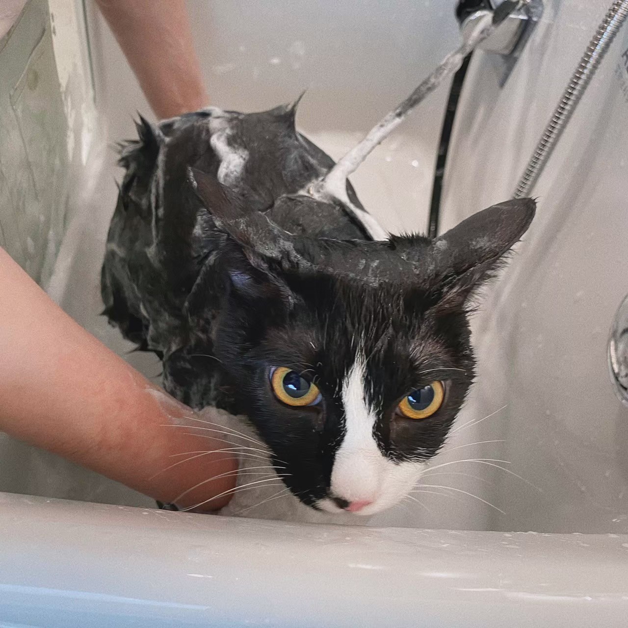 洗澡過程若遇到緊張的狗狗或貓咪,美容師會立刻放慢動作、用輕柔語氣安撫,不讓毛孩有壓力。 結束前,我們也一定會檢查耳朵、腳掌、肚子這些容易卡髒污的地方,確認全部都乾乾淨淨。